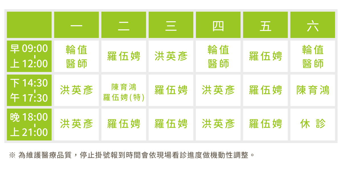 晚診 18:00 - 21:00